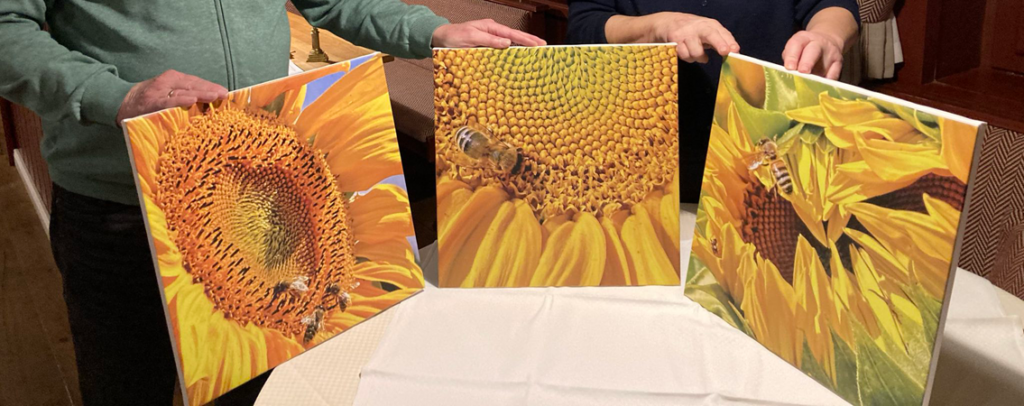 Beate Jeske gehört wieder der Dank für die hier vorliegenden Bilder. Sie übergab in der Runde ein Geschenk für das Regionalbüro. Drei wundervolle fertig gerahmte Bilder werden ab Januar im Regionalbüro zu bewundern sein.