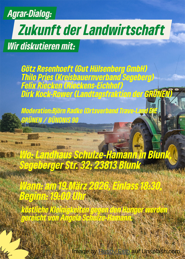 Die Ortsverbände der GRÜNEN Bad Segeberg und Trave-Land laden ein zu einer öffentlichen Diskussion mit folgenden Podiumsgästen: